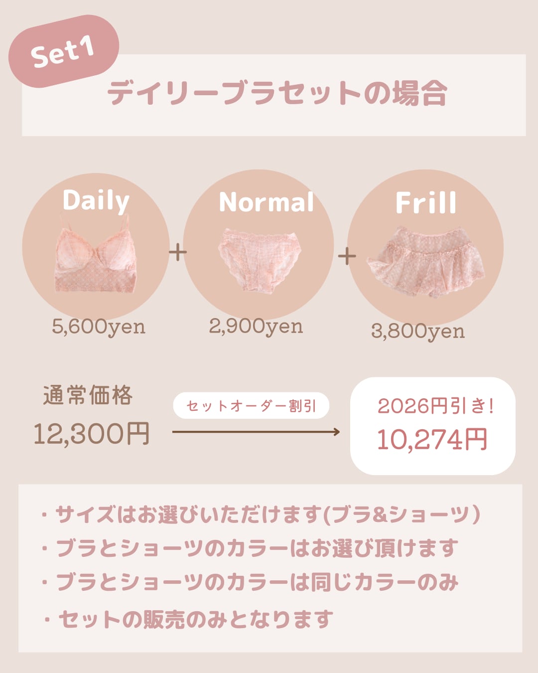【Set1】デイリーブラ・ノーマルショーツ・フリルパンツ