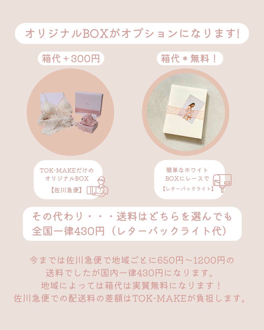 ・お箱はホワイト無印BOX【無料】とオリジナルロゴ入りBOX【+300】がございます。