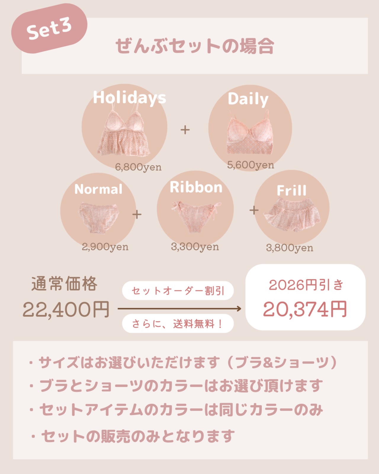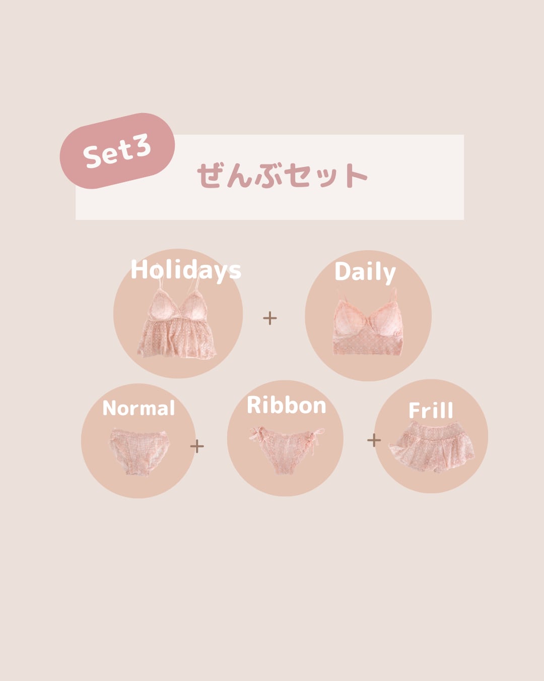 【Set3】デイリー&ホリデーブラ・ノーマルショーツ・リボンショーツ・フリルパンツ